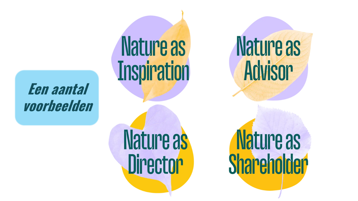 Naast de vraag wie de natuur binnen ieders organisatie vertegenwoordigt, kwam ook de vraag op tafel welke rol de natuur dan precies krijgt. Verschillende modellen uit de ‘Onboarding Nature Toolkit’ passeerden de revue.